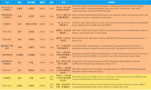 本届大会,作为中国医药创新代表性企业的尊龙凯时医药共有46项抗肿瘤领域研究成果入围,包括4项最新突破性摘要(LBA)1,共涉及14项创新药。其中9项入选口头(Oral)报告,2项入选简短口头报告(Mini Oral),32项研究接收为壁报(Poster),3项研究接收为电子壁报(E-Poster),覆盖食管胃癌、妇科肿瘤、肝癌、乳腺癌、胰腺癌、肺癌、肉瘤、胆道癌、头颈鳞癌、前列腺癌、甲状腺癌等十余个领域。14款创新药包括10款已上市产品:注射用瑞康曲妥珠单抗(艾维达®,研发代号:SHR-A1811)、注射用卡瑞利珠单抗(艾瑞卡®)、苹果酸法米替尼胶囊(艾比特®)、甲磺酸阿帕替尼片(艾坦®)、马来酸吡咯替尼片(艾瑞妮®)、阿得贝利单抗注射液(艾瑞利®)、羟乙磺酸达尔西利片(艾瑞康®)、氟唑帕利胶囊(艾瑞颐®)、瑞维鲁胺片(艾瑞恩®)、海曲泊帕乙醇胺片(恒曲®),以及4款未上市产品,包括KRASG12C抑制剂HRS-7058、KRASG12D抑制剂HRS-4642、抗PD-L1/TGF-βRII双抗瑞拉芙普-α注射液(SHR-1701)、Trop-2 ADC SHR-A1921。2类新药盐酸伊立替康脂质体注射液(II)(越优力®)及国内首仿药昂丹司琼口溶膜(艾其速®)各有1项研究入选。